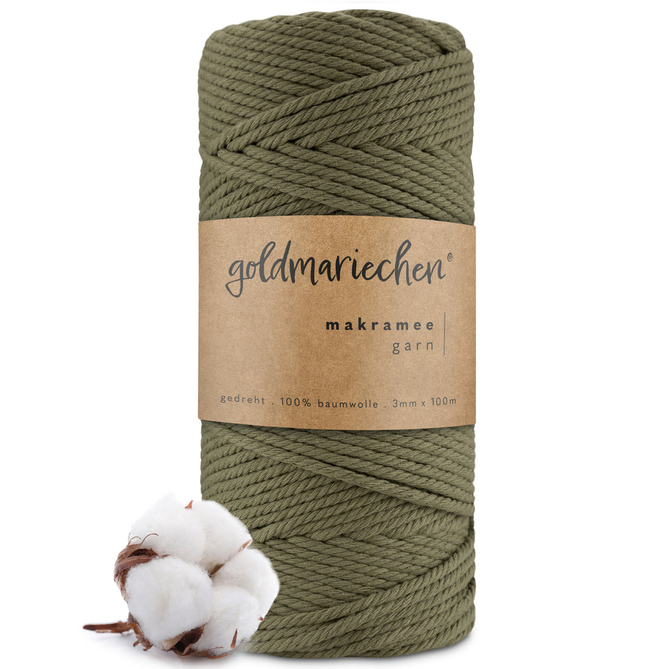 goldmariechen® makramee garn | 3mm x 100m | mehrfach gedreht | agave