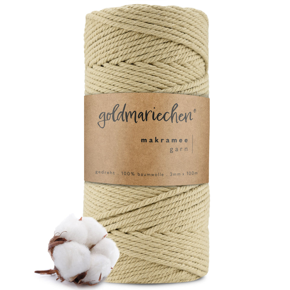 goldmariechen bietet Dir eine einzigartige Kombination aus höchster Qualität und Nachhaltigkeit. Unser Makramee-Garn besteht aus 100% reiner Baumwolle und besitzt dadurch eine wunderbar natürliche Optik und ein angenehmes Gefühl beim Verarbeiten. Es ist leicht zu kämmen und robust genug, um auch anspruchsvolle Projekte wie Traumfänger oder Wandbehänge zu meistern. Hergestellt in Europa, klimaneutral und plastikfrei verpackt. Das perfekte Gesamtpaket.