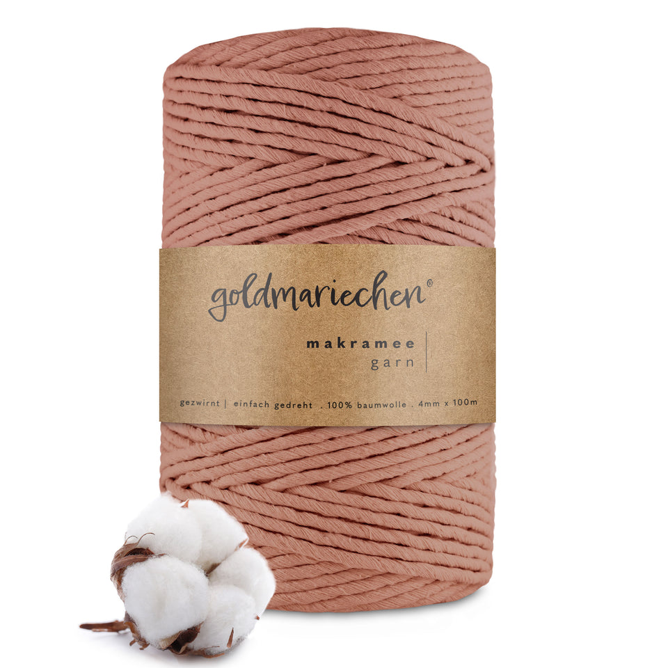 Wie beschreibt man die Farbe Rosenholz am besten? Wahrscheinlich als Mischung aus leichten Rosé-Tönen und einem Hauch von holziger Wärme. Klingt schon irgendwie besonders. Mit diesem Farbton erschaffst Du einzigartige, vielseitige Makramee-Kunstwerke und kannst deiner Kreativität freien Lauf lassen. Mit unserem einfach gedrehten Garn entscheidest Du dich für die geschmeidige Variante, die sich noch leichter auskämmen lässt.