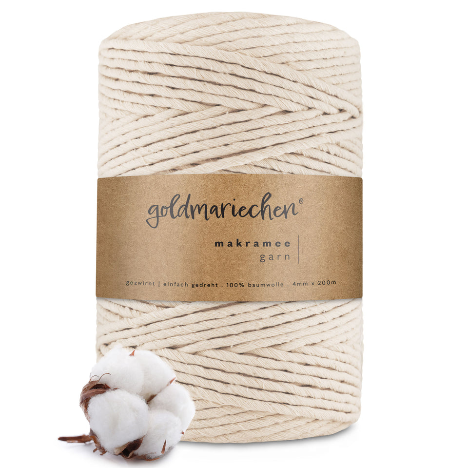 Makramee-Garn von goldmariechen besteht zu 100% aus reiner Baumwolle und sorgt dadurch für eine natürliche Optik und ein angenehmes Gefühl beim Verarbeiten. Es ist leicht zu kämmen und gleichzeitig robust genug, um größere Projekte zu meistern, wie z.B. Traumfänger oder Wandbehang. Unser Garn wird in Europa hergestellt und ist plastikfrei und klimaneutral - für höchste Garnqualität und die extra Portion Nachhaltigkeit. Das perfekte Gesamtpaket.