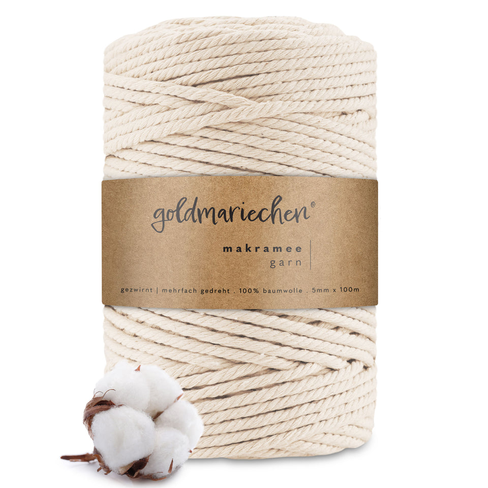 goldmariechen bietet Dir ein hochwertiges Makramee-Garn aus 100% reiner Baumwolle. Es ist leicht auskämmbar und gleichzeitig stabil genug für größere Projekte wie Tramfänger, Blumenampeln und vieles mehr. Dank seiner natürlichen Optik und der angenehmen Verarbeitung wird es Dir viel Freude bereiten. Außerdem kannst Du sicher sein, dass es plastikfrei und klimaneutral in Europa hergestellt wird - goldmariechen steht für Qualität und Nachhaltigkeit!