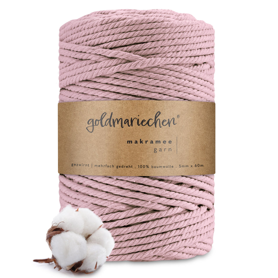 goldmariechen® makramee garn | 5mm x 60m | mehrfach gedreht | altrosa