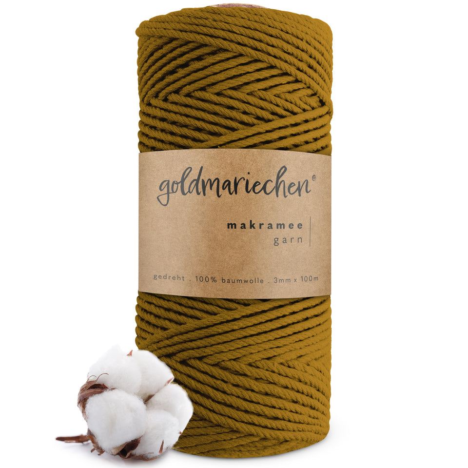 goldmariechen® makramee garn | 3mm x 100m | mehrfach gedreht | olive