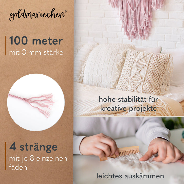 goldmariechen® makramee garn | 3mm x 100m | mehrfach gedreht | rose