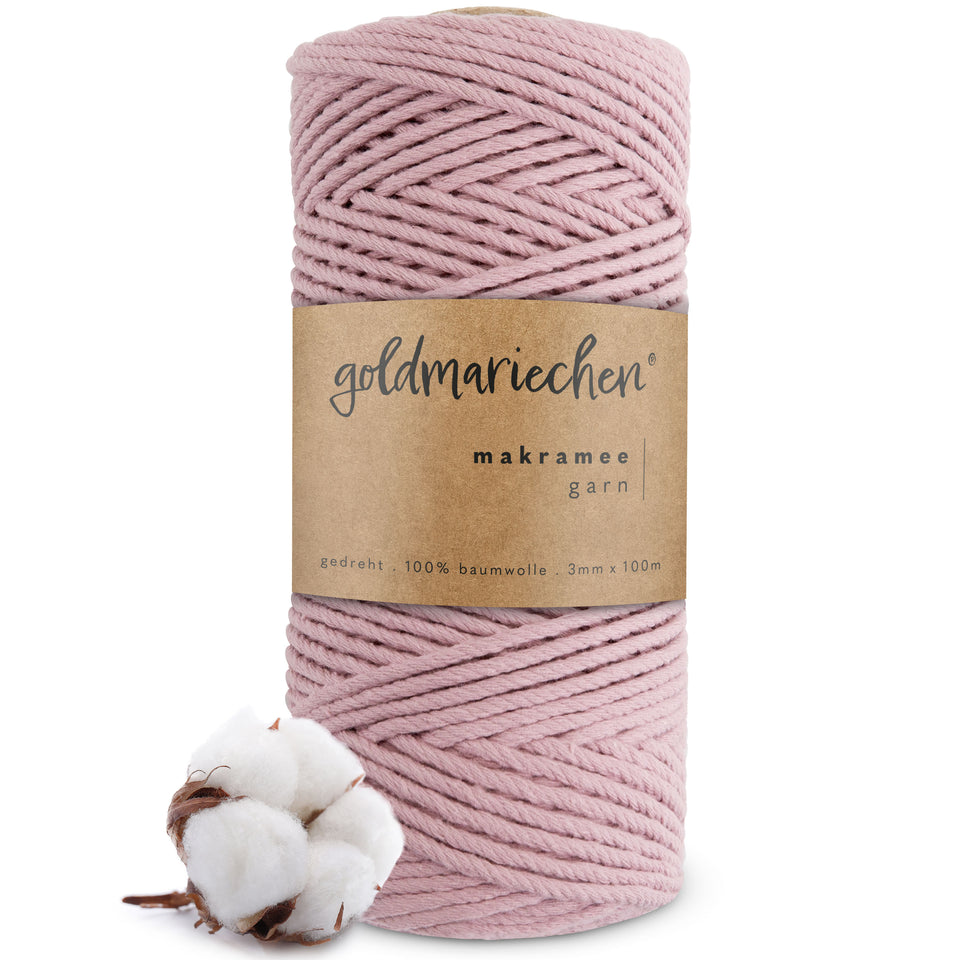 goldmariechen® makramee garn | 3mm x 100m | mehrfach gedreht | altrosa
