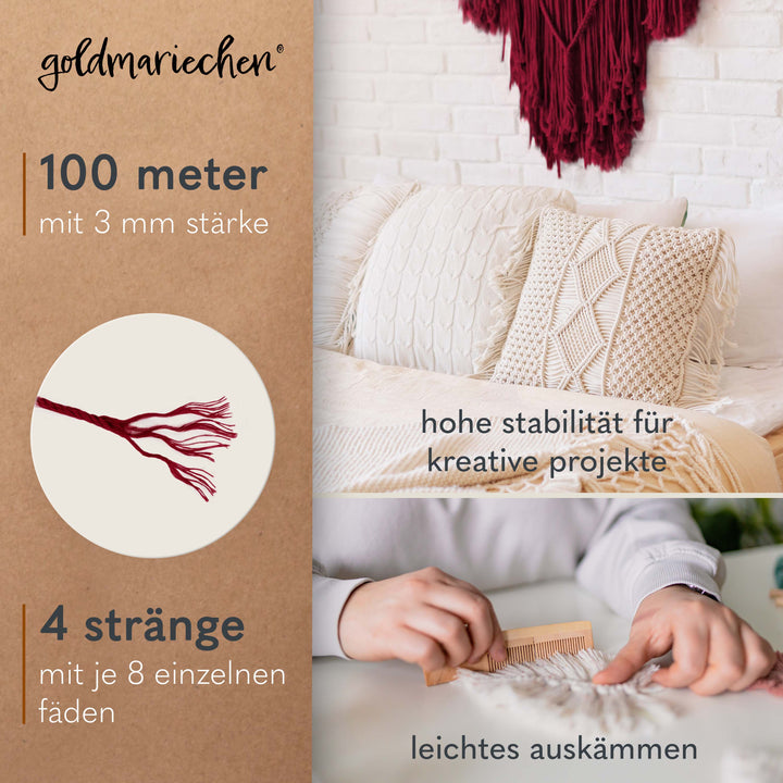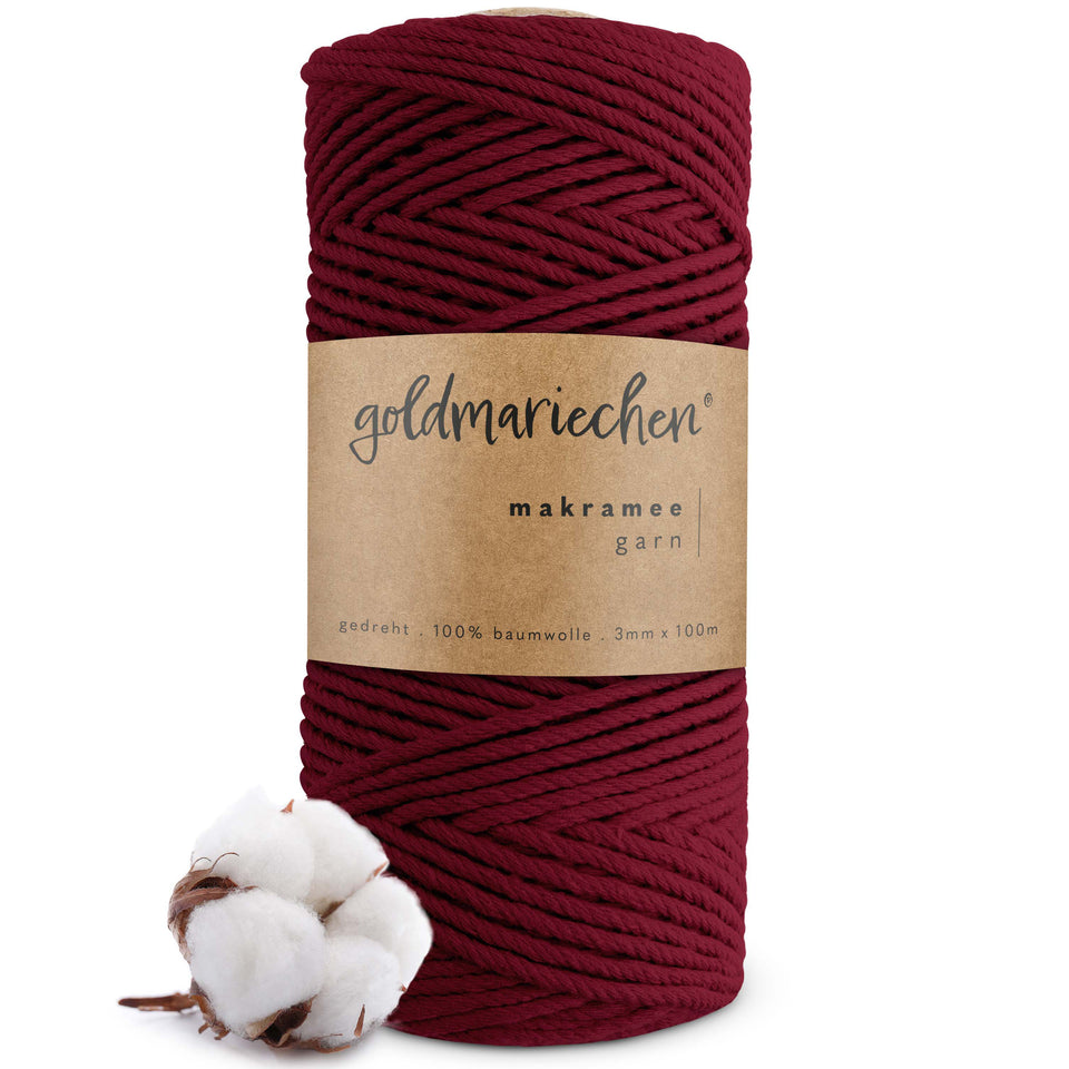 goldmariechen® makramee garn | 3mm x 100m | mehrfach gedreht | burgunder