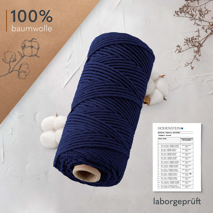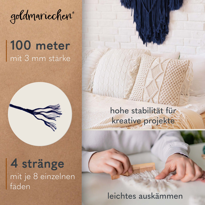 goldmariechen® makramee garn | 3mm x 100m | mehrfach gedreht | tiefsee